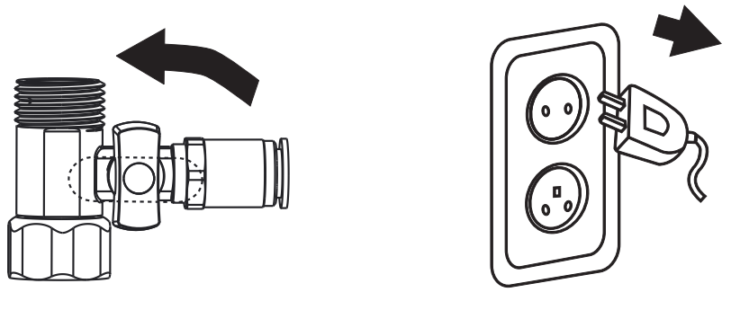 (1). Đóng van bi ba chiều đầu vào nước và rút nguồn điện