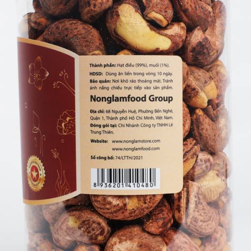 Hạt điều Bình Phước rang củi Nonglamfood được phát triển bởi các nhà Khoa Học Đại Học Nông Lâm, quy trình chế biến hiện đại đến từ Hàn Quốc đem đến chất lượng chuẩn xuất khẩu Châu Âu, cho khách hàng an tâm khi sử dụng hàng ngày.