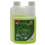 | 11. Mô tả ngắn | Kitchen KLEEN ứng dụng công nghệ sinh học với thành phần chứa công thức vi sinh độc quyền từ CANADA đạt tiêu chuẩn an toàn Châu Âu. Kitchen KLEEN biến dầu mỡ thành nước giúp dễ dàng làm sạch các bề mặt, kiểm soát mùi và vi khuẩn gây bệnh. Thân thiện môi trường. pH trung tính không gây kích ứng da, không gây ăn mòn thiết bị. Không chứa hợp chất hữu cơ bay hơi (VOCs). Ứng dụng: Lau chùi vết dầu mỡ khu vực bếp, tường bếp, sàn nhà, máy hút mùi, nơi chế biến thực phẩm thường xuyên tiếp xúc dầu mỡ… |