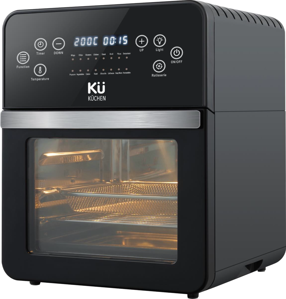 – Dung tích lớn nhưng tiết kiệm không gian: Nồi Chiên Không Dầu KU PCS6218 15 lít đủ để bạn nướng gà nguyên con, kích thước nhỏ gọn 15.5x13x15 inch trên mặt bếp, tốn ít diện tích. Nhiều độ nấu cho phép bạn chuẩn bị bữa ăn với quy mô cho toàn gia đình.